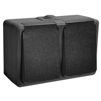 Handson Opbouw Stopcontact 2-voudig RA Spatwaterdicht Zwart