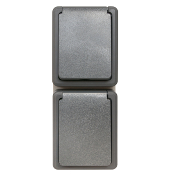 Deze dubbele Handson wandcontactdoos/buitenstopcontact met randaarde is spatwaterdicht (beschermingsklasse IP54), dus geschikt voor (verticale) montage in vochtige ruimtes of buitenshuis. Maximaal aansluitvermogen 3680 watt.