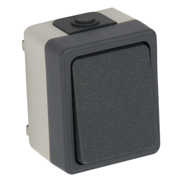 Deze wisselschakelaar grijs/zwart is spatwaterdicht (beschermingsklasse IP44), dus geschikt voor montage in vochtige ruimtes of buitenshuis. Maximaal aansluitvermogen 2300 watt. Met een wisselsschakelaar kun je vanaf 2 schakelpunten 1 lamp bedienen.