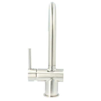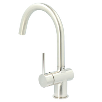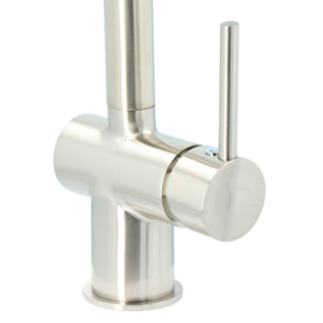 De Handson Oscar éénhendel keukenkraan RVS heeft met de elegante rond gevormde uitloop een eigentijds ontwerp en kenmerkt zich met een stoerdere uitstraling door de geborstelde RVS afwerking. Ook verkrijgbaar is een uitvoering in chroom. Zo is er een passende kraan voor elk interieur. De éénhendelbediening zorgt voor een eenvoudigere menging van koud en warm water. De decoratieve hoge uitloop van maar liefst 31,2 cm in combinatie met de 360° draaibaarheid van de kraan geeft veel ruimte in de gootsteen. Dat is handig bij het vullen van grote pannen of emmers. Bovendien zorgen de keramische schijven voor een soepele en nauwkeurige draaiing en deze vergen nauwelijks onderhoud. Het beste wordt de kraan gereinigd met alleen water en een zachte doek. Reiniging en onderhoud kosten dus weinig tijd.