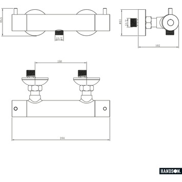 Handson Oscar thermostatische douchekraan chroom 15 cm
