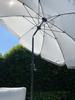 Hele mooie parasol, heel elegant, minder warm omdat ie wit is