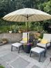 Gevuld met hydrokorrels, potgrond en planten is de pot een mooie en stevige parasolvoet. Er is een schroef om aan te kunnen draaien zodat voor diverse maten parosols.