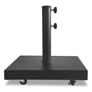 Dankzij de wieltjes verplaats je de parasolvoet eenvoudig, zonder zwaar te tillen. Handig als je de schaduwplek wilt aanpassen of de parasol even opzij zet. De combinatie van metaal en beton met stalen onderdelen maakt de voet stevig en geschikt voor buiten.