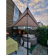 Wij zijn een blij met deze prachtige pergola. Hij is speels door zijn vormgeving en geeft een prachtig effect in onze achtertuin. Het dak is bij slecht weer zeer snel eraf te halen en op te bergen. De stof vouwt makkelijk op en is makkelijk weg te leggen. Een echte aanwinst voor onze achtertuin