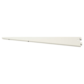 De dubbele plankdrager, kan na het monteren van de dubbele rails, op iedere willekeurige hoogte ingehangen worden in de rails. Hierna kan er een plank op gemonteerd worden, deze dubbele plankdrager 22 cm is geschikt voor planken met een diepte vanaf 22 cm.