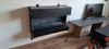 Mooie strakke plankdragers, worden hier gebruikt om een wandplank achter de bank te creëren.