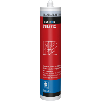 Handson Polyfix kit transparant 290 ml is een lijmkit die geschikt is voor monteren, lijmen en afdichten van uiteenlopende materialen. De kit droogt helder op, waardoor hij gebruikt wordt op plekken waar de lijmnaad zo weinig mogelijk zichtbaar mag zijn. Dankzij de goede hechting op ondergronden zoals hout, kunststof, glas en metaal is hij inzetbaar voor veel binnenklussen.
