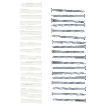 De Handson rail schroeven set is speciaal geschikt voor de Handson rails. Eén verpakking bevat 18 gegalvaniseerde schroeven en kunststof pluggen.