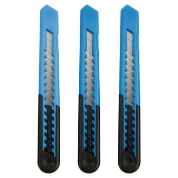 De set afbreekmessen bestaat uit 3 stuks afbreekmessen van 9mm. De messen zijn gemaakt van sterk kunststof. Hierdoor zijn de messen stevig en multifunctioneel te gebruiken, bijvoorbeeld als stanleymes. Alle afbreekmessen zijn voorzien van een afneembare eindkap. Hiermee breekt u het versleten gedeelte van de mesjes makkelijk af. De 3 afbreekmessen van de set hebben een mesbreedte van 9mm. De messen kunnen op elke gewenste lengte worden vastgezet. Moet u de mesjes vervangen? In Handson?s assortiment vindt u bijbehorende vervangende reservemesjes.