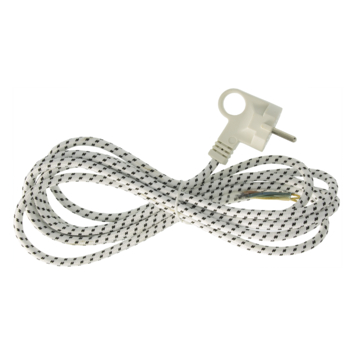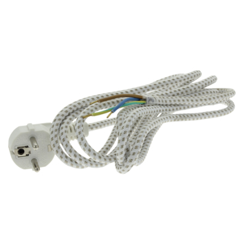 Het snoer met stekker apparaat wit kunt u aan een elektrisch apparaat verbinden. Het witte snoer is 3meter lang, gemaakt van vinyl en heeft een maximale belastbaarheid van 1.320Watt. U kunt dit snoer bijvoorbeeld gebruiken als strijkijzersnoer.