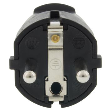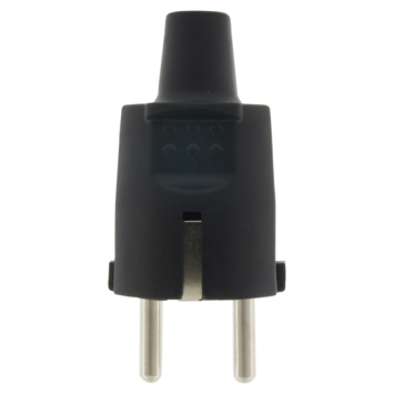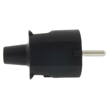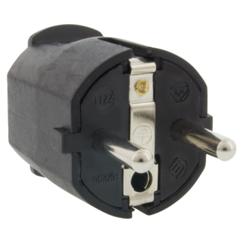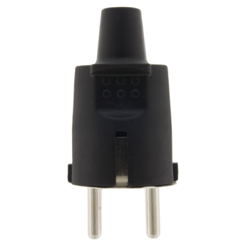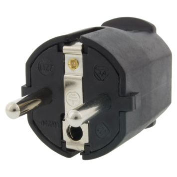 Handson stekker met randaarde rubber zwart, voor montage op een elektriciteitssnoer. Maximale aansluitwaarde van 16 ampère.
