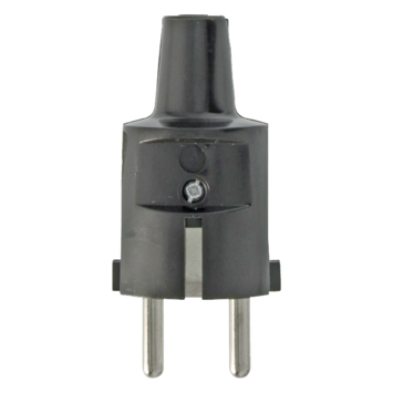 Plieger stekker met randaarde rubber zwart, voor montage op een elektriciteitssnoer. Maximale aansluitwaarde van 16 ampère.