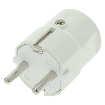 Op deze Handson stekker RA zij-invoer wit met uitloop kunt je huishoudelijke apparaten aansluiten. De aarde zorgt ervoor dat, in geval van kapotte- of losgeschoten bedrading in een apparaat (bijvoorbeeld wasmachine of computer), de metalen delen niet onder stroom komen te staan. De stroom wordt dan via een extra aardedraad in de aarde geleid.