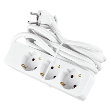 Op deze Handson stekkerdoos 3-voudig wit 3 meter met 3 stopcontacten sluit je maximaal 3 elektronische apparaten tegelijkertijd aan, zodat je in een handomdraai het aantal stopcontacten in huis of op kantoor aanzienlijk vergroot. De witte stekkerdoos gebruik je onder meer om apparatuur zoals printers of computers op kantoor aan te sluiten, maar bijvoorbeeld ook om huishoudelijke apparatuur in de keuken of bijkeuken van stroom te voorzien. De contactdozen op de stekkerdoos zijn geschikt voor maximaal 230V.