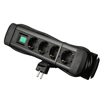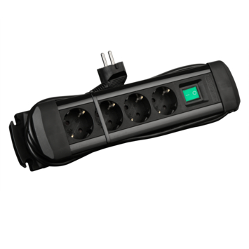 Handson stekkerdoos 4-voudig met schakelaar zwart 1,8 m