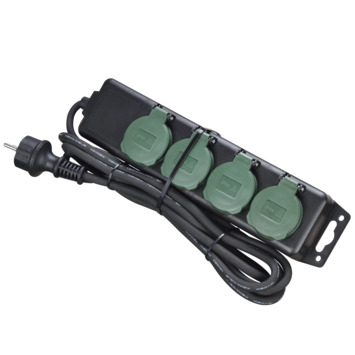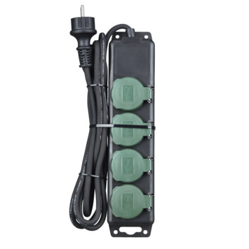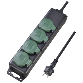 Op deze Handson Stekkerdoos 4-voudig RA Zwart/ Groen 3 Meter Waterdicht bevinden zich 4 contactdozen waarop je 4 elektronische apparaten tegelijkertijd kunt aansluiten. Dankzij de robuuste uitvoering van de stekkerdoos vergroot je het aantal stopcontacten in je tuin of werkplaats. De zwarte stekkerdoos gebruik je onder meer om tuingereedschap of erfverlichting aan te sluiten, maar bijvoorbeeld ook om machines aan te sluiten als je aan het werk bent in een bedrijfsomgeving waar vuil de stekkerdoos zou kunnen beschadigen. De contactdozen zijn waterdicht en voorzien van een klep, zodat vuil en vocht geen kans maken.