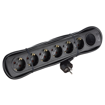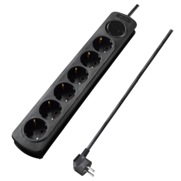 Handson Stekkerdoos 6-voudig RA Zwart 2,5 Meter