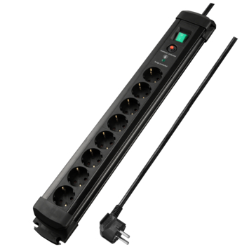 Handson stekkerdoos 8-voudig met schakelaar zwart 2,5 m