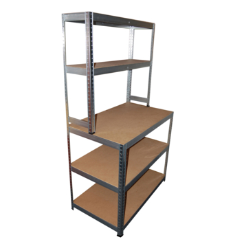 Het Opbergrek met werkbank is een metalen opbergrek met een werkbank van het merk Handson. Dit rek is de ideale combinatie van een werkbank met opbergruimte. Het is een hoog en zeer stevig opbergrek met 3 HDF legplanken. Het opbergrek is makkelijk om te monteren namelijk zonder schroeven. Wel dient dit rek nog vastgezet te worden tegen de muur voor optimale stabiliteit en stevigheid Op de bovenste planken kan 100kg per plank, ideaal voor het opbergen van kleine artikelen of items waar je tijdens het klussen makkelijk bij wilt kunnen. Op de 2 onderste planken kan 200kg. Wat ook handig is, is dat je in het midden een werkbank hebt die je zeer nuttig kan gebruiken tijdens het klussen of opbergen. De hoogte van de Opbergrek met werkbank is 1,80m, de diepte is 60cm en de breedte is 100cm.