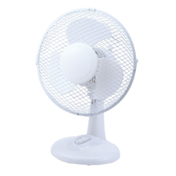 De Handson tafelventilator Portland in de kleur wit is een eenvoudige oplossing voor warme dagen. De 30 centimeter hoge ventilator is voorzien van drie kunststof ventilatorbladen, in een veilige metalen behuizing met een doorsnede van 23 centimeter. De ventilator kan naar keuze op 1 van de drie snelheden worden gezet. De blaasrichting kan worden vastgezet, maar je hebt ook de mogelijkheid om een groter deel van de ruimte te verkoelen door de zwenkfunctie aan te zetten. De ventilator is 30 centimeter hoog, 23 centimeter breed, heeft een snoerlengte van 180 centimeter en is geschikt voor een netspanning van 230 volt.