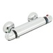De thermostaatknop van de kraan is uitgerust met een temperatuurbeveiligingsknop die de watertemperatuur begrenst. Ideaal wanneer je bijvoorbeeld jongere kinderen hebt. Wil je genieten van een extra warme douche, dan druk je deze knop in en draait de kraan verder open.