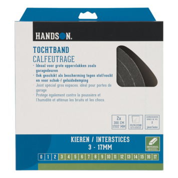 Met het Handson tochtband dicht je kieren en spleten bij ramen en deuren erg effectief. Dit antracietkleurige tochtband is gemaakt van PU-schuim en is universeel voor vele kieren van 2 tot maximaal 4 mm te gebruiken. Zo houd je kou, stof en vocht effectief buiten de deur. Dit tochtband is gemaakt van PU-schuim en kan dankzij de zelfklevende plaklaag gemakkelijk worden vastgeplakt. In deze verpakking zitten 2 stuks van 3 meter lang.