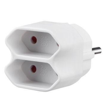 Deze witte verdeelstekker 2,5 ampère, ook wel tweeweg stekker genoemd, is een praktische eurostekker voor het aansluiten van twee elektrische apparaten op één stopcontact.