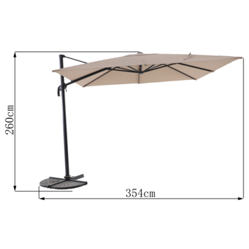 Ben je toe aan wat schaduw in je tuin? De Handson zweefparasol Ibiza in taupe is precies wat je zoekt! Met een royale diameter van 300 cm biedt deze parasol volop bescherming tegen de zon. Het vierkante ontwerp zorgt voor een moderne uitstraling en met het handige uitklapmechanisme met hendel is het openen en sluiten een fluitje van een cent. Gemaakt van een sterke combinatie van kunststof en metaal, kun je rekenen op een parasol die stevig en betrouwbaar is. Het polyester doek is niet alleen mooi van kleur, maar ook functioneel. Door het materiaal is het doek gemakkelijk schoon te maken en blijft het lang mooi. Dus waar wacht je nog op? Creëer jouw ideale plek in de tuin met deze stijlvolle parasol!