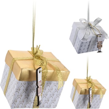Het kerstseizoen is een seizoen vol met prachtige verlichting en decoratie. De sfeer in huis creëer jij met jouw orginaliteit. Deze decoratieve cadeaudoos is een extra touch aan de kerstboom. Het cadeaudoosje is gemaakt van kunststof en is 5 bij 5 centimeter.