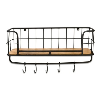 Hangend wandrek Alianne is een rekje met 1 houten plank en 5 (hang)haken. Hangend wandrek Alianne kan op meerdere manieren creatief worden gebruikt. Het hangend wandrekje kan bijvoorbeeld gebruikt worden als keukenrek, kapstok of als sfeervol wandrek met leuke woonaccessoires en kaarsen. Het wandrekje is gemaakt van metaal en is mat zwart gelakt. De afmetingen zijn (bxhxd): 35x75x24 cm. Hangend wandrek Alianne is ook verkrijgbaar in twee grotere versies met zwenkwieltjes in de afmetingen (hxbxd) 160x95x38 cm en (hxbxd) 86x75x42 cm.