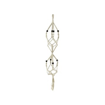 Hanger macrame touw naturel met kraal h100 cm is hip en helemaal van deze tijd. Hang met deze handgemaakte hanger een groepje hangplanten aan het plafond, voor het raam of waar jij ook maar wilt. En tover jouw huis om in een groene oase. Deze macrame plantenhanger is verkrijgbaar in verschillende modellen. Hanger macrame touw naturel met kraal h100 cm is 100 centimeter lang.