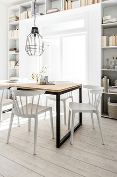 We hebben er drie op een rij boven de tafel van de eetkamer.