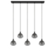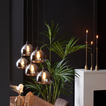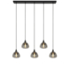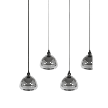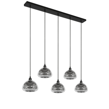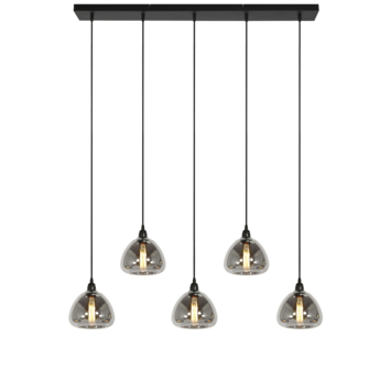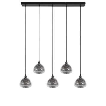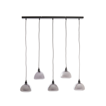 De hanglamp Kai beschikt over vijf lichtpunten die exclusief zijn ontworpen voor E27 lichtbronnen. De vijf lampen hangen op diverse hoogtes, wat een speels effect toevoegt aan de ruimte. De afmetingen van de hanglamp bedragen 104x12,5x19 cm. De bolvormige lampenkappen zijn vervaardigd van rookglas, terwijl de overige details van de lamp zijn uitgevoerd in elegant zwart metaal.