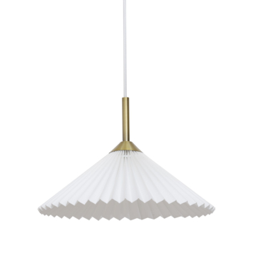 De hanglamp Noah is exclusief voor de E27 lichtbron. De lampenkap heeft een diameter van 35 cm. De hoogte van de lamp kan je naar eigen wens verstellen. De hanglamp heeft een witte plissé kap met messing kleurig top. De hanglamp heeft een klassieke uitstraling door de geplooide kap. De hanglamp is gemaakt van kunststof.