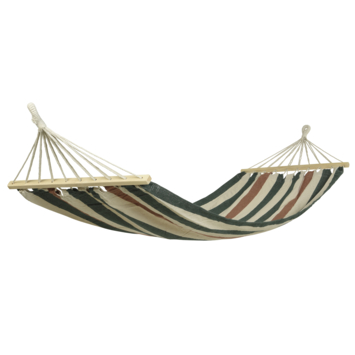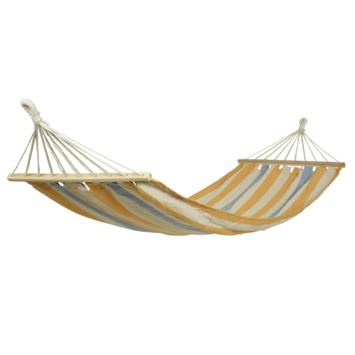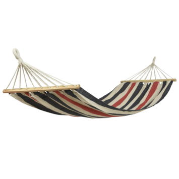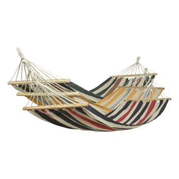 Leuke hangmat in diverse kleuren. De hangmat is gemaakt van een mix tussen katoen en polyester. Belastbaar tot 120 kg. Verkrijgbaar in de combinatie blauw/rood, geel/blauw of groen/terra.
