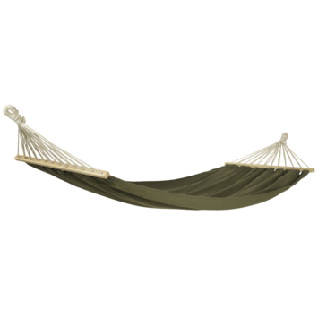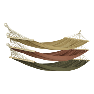 Leuke hangmat in diverse kleuren. De hangmat is gemaakt van een mix tussen katoen en polyester. Belastbaar tot 120 kg. Verkrijgbaar in de kleuren groen, terra en zand.