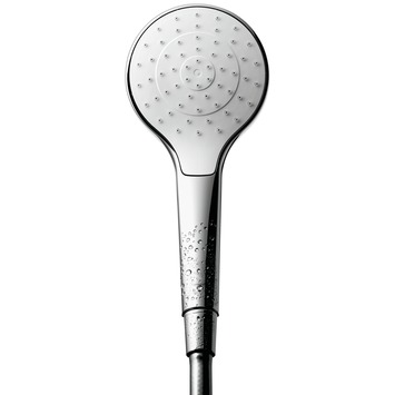 Breng luxe en functionaliteit naar je badkamer met de Hansgrohe MySelect S douchekop. Deze handdouche heeft een diameter van 11 cm en een fraaie chroom-witte afwerking die een moderne uitstraling geeft. De handdouche biedt één straalstand, ideaal voor een krachtige en doelgerichte waterstroom die elke douchebeurt verfrist. De anti-kalk technologie voorkomt de ophoping van kalk, waardoor de handdouche eenvoudig te onderhouden is en langer meegaat. Houd er rekening mee dat deze handdouche zonder doucheslang wordt geleverd; je zult dus een doucheslang apart moeten aanschaffen om hem te kunnen gebruiken. De Hansgrohe MySelect S handdouche combineert stijl met gebruiksgemak, en is perfect voor iedereen die op zoek is naar een praktische en esthetische doucheoplossing. Upgrade je douche-ervaring met deze hoogwaardige handdouche.