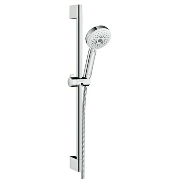 Ontspannen en genieten van een heerlijke douche met de Hansgrohe Doucheset Myclub Multi. De Crometta douchekop heeft een doorsnede van 10 cm en met een keuze uit 3 straalstanden is er altijd een douche die op dat moment passend is: een krachtige regenstraal, een verfrissende Turbostraal of een massagestraal. Kiezen gaat eenvoudig door aan de straalschijf te draaien. De set omvat een handdouche, een glijstang met instelbare handdouchehouder en een doucheslang. De handdouchehouder is 90° draaibaar, en bovendien op de stang omhoog, omlaag en links en rechts te draaien. Dat geeft maximale flexibiliteit in de straalhoek van de douche. Kalk en vuil kunnen makkelijk worden weggeveegd van de siliconen noppen van de douchekop door de QuickClean anti-kalkfunctie. Onderhoud wordt daarmee een fluitje van een cent