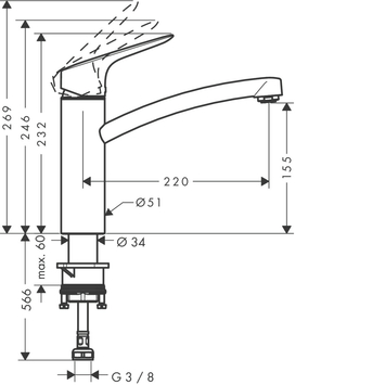 Hansgrohe Keukenkraan MySport M met Hendel Chroom