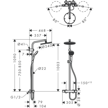 Hansgrohe regendoucheset MySelect S 240 met handdouche en thermostaatkraan 3 standen chroom