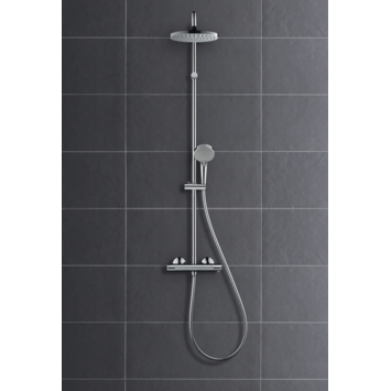 De set heeft een royale hoogte van 120,1 cm, een breedte van 29,5 cm en een diepte van 46,8 cm, waardoor deze doucheset geschikt is voor zowel kleine als grote badkamers. De verstelbare handdouchehouder zorgt ervoor dat je de douchekop altijd op de juiste hoogte kunt instellen. De set wordt geleverd inclusief bevestigingsmateriaal, waardoor installatie eenvoudig is.