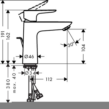 De kraan is voorzien van een metalen G 1 ¼ afvoergarnituur, met een handige trekstang waarmee het afvoer te openen en te sluiten is. Aansluitslangen en een fixatieset zijn inbegrepen, dus is het aansluiten van deze trendy wastafelkraan kinderspel! De kranen van hansgrohe hebben 5 jaar fabrieksgarantie.