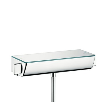 De Hansgrohe Thermostatische Douchekraan Ecostat Select Chroom 15 cm heeft een uniek design waarin strakke hoeken gecombineerd worden met elegante rondingen. Dat maakt de douchekraan een echte eye-catcher in de moderne badkamer. Wat deze thermokraan zo ook opvallend maakt, is het plateau waarop douchespullen gezet kunnen worden. Ideaal als er weinig ruimte is in de douche. Deze Select douchekraan heeft een chromen plateau, er is ook een uitvoering in het wit. De thermostatische douchekraan zorgt voor een ontspannen douche-ervaring, omdat de thermostatische werking het watertemperatuur constant houdt, ongeacht wisselingen in de waterdruk. De kraan is voorzien van keramische schijven. Deze vergen weinig onderhoud en gaan bovendien langer mee dan kranen met rubberafdichtingen. Bovendien is de mengkraan is eenvoudig schoon te houden dankzij het uitspoelbare vuilfilter waardoor hij beschermd is tegen vuil uit leidingen.