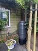Mooie methode om regenton aan te sluiten op de regenpijp.