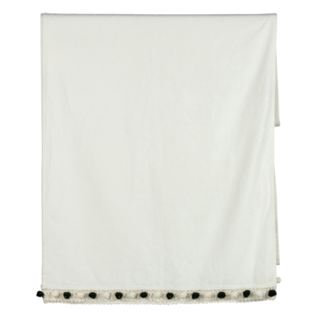 Knus hemeldoek. Offwhite katoen voorzien van zwart/witte pompom bolletjes aan de onderzijde.