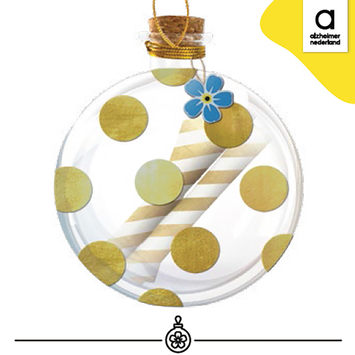 In de unieke Herinneringen Kerstbal van Alzheimer Nederland vereeuwig je de mooiste herinneringen van afgelopen jaar. Elke aankoop draagt bij aan meer wetenschappelijk onderzoek naar dementie.