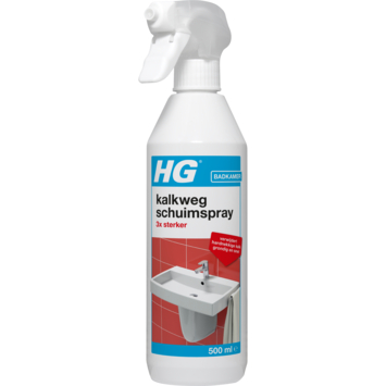 HG kalkweg schuimspray 3x sterker verwijdert hardnekkige kalkaanslag gemakkelijk, grondig en snel en laat een stralende glans achter. Het is geschikt om dergelijke hardnekkige kalk, wat een doffe waas geeft, te verwijderen van tegels, douchecabines, kunststof baden, wastafels, kranen, douchekoppen en aanrechtbladen. Dit product levert een volle schuim dat zorgt voor een langere inwerktijd en tast chroom, glazuur en voegen niet aan. HG kalkweg is ook verkrijgbaar in 2 andere varianten.