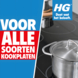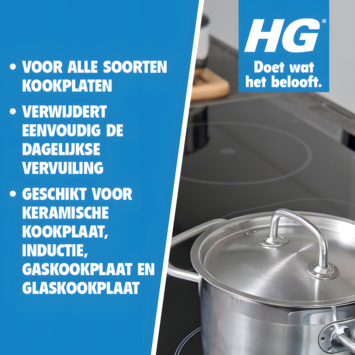Voor het verwijderen van hardnekkig vet, vuil, kalk en kookranden op een inductie of keramische kookplaat, adviseren wij HG kookplaat intensief reiniger.
