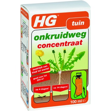 HG onkruidweg concentraat 100ml is een zelfwerkend product voor het doden en effectief verwijderen van onkruid zonder schoffel en vieze handen. Het onkruidweg concentraat is vooral handig voor gebruik in een lagedruk handspuit of gieter. Met 1 verpakking HG onkruidweg concentraat van 100 ml kan maar liefst 10 liter onkruidweg worden gemaakt. Het mengsel kan direct worden toegepast, HG onkruidweg concentraat moet eerst worden verdund conform de aanwijzingen in de gebruiksaanwijzing. Bespuit het onkruid licht en voorkom hierbij afdruipen. Al na 4 dagen is het eerste resultaat zichtbaar. Let op: Gebruik herbiciden veilig. Lees vóór gebruik eerst het etiket en de productinformatie.